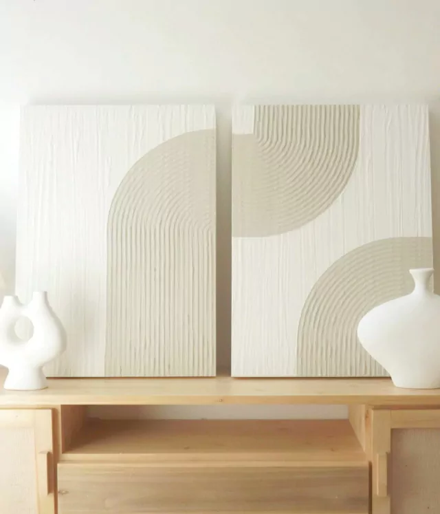 Cuadro texturado color blanco y hueso realizado 100% de forma artesanal.